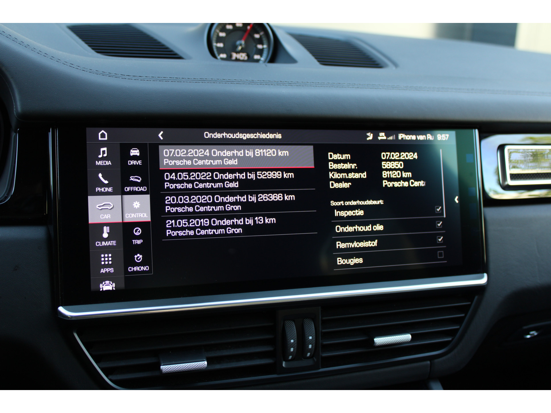 Dankzij de 360 graden camera kunt u zowel de voor- als achterzijde van het voertuig in het oog houden, wat bijdraagt aan een veiligere rijervaring. Pech of storing, altijd vervelend. Maar met Connected Services weet u direct wat eraan scheelt. En dus ook wat er moet gebeuren. Uw favoriete muziek klinkt beter dan ooit met het ingebouwde high performance audiosysteem. Electronic climate control verwarmt of koelt het interieur met een druk op de knop. Parkeersensoren helpen u tijdens het in- en uitparkeren. Ook is de Porsche uitgerust met: dashboard met spraakbediening, navigatiesysteem met harde schijf, WIFI-hotspot, sportstuur met schakelpaddels, DAB ontvangst en regensensor.
